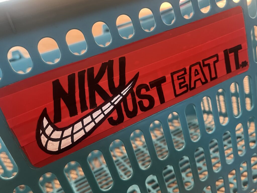買い物カゴのロゴ?が薄れてしまい、なんとなく見た目が貧相だな、と思いまして。