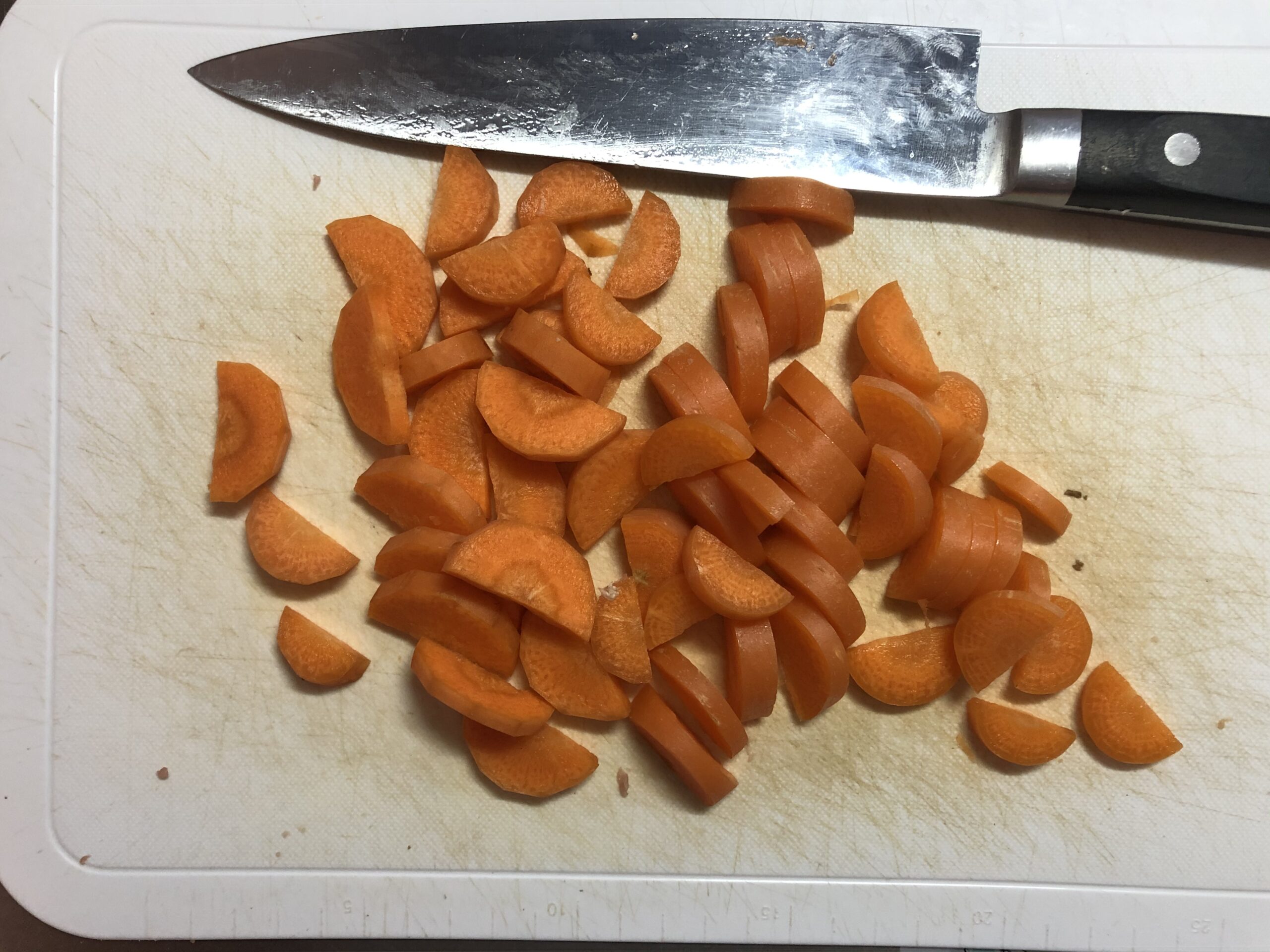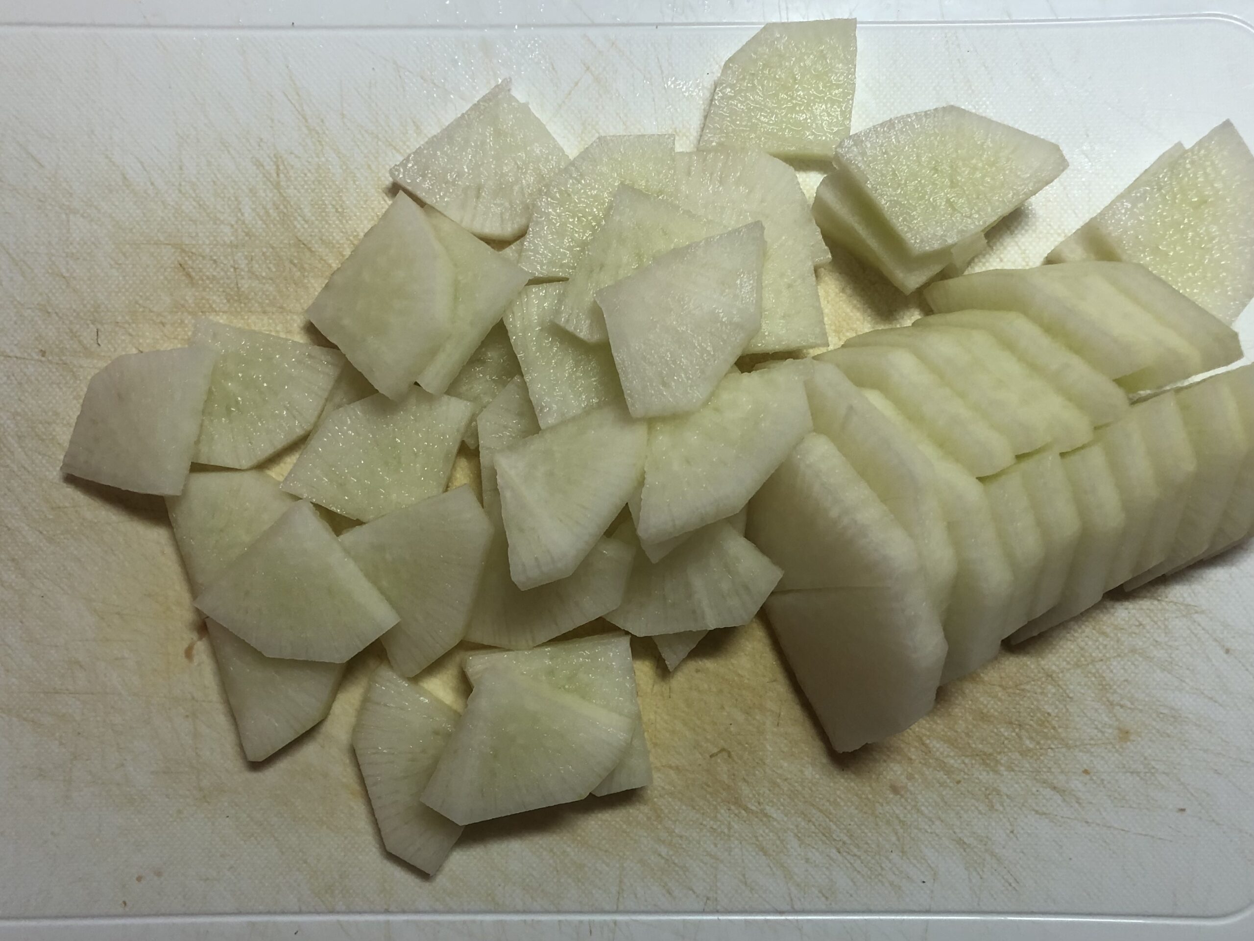 にんじん・大根は3㎜の半月切り(大きさによってはいちょう切り)も入れていきましょう。