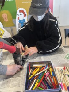 用意されていた丸くカットされた紙に、各々で好きに色づけたり新しく絵を描き込んでみたり。