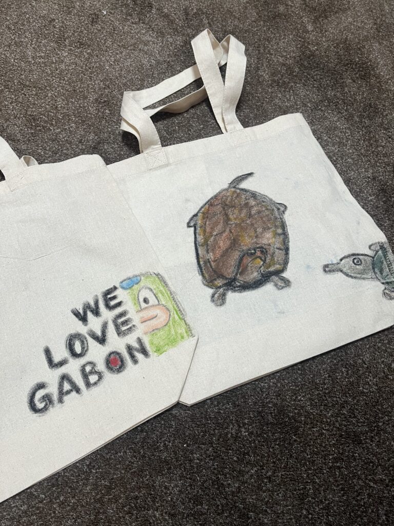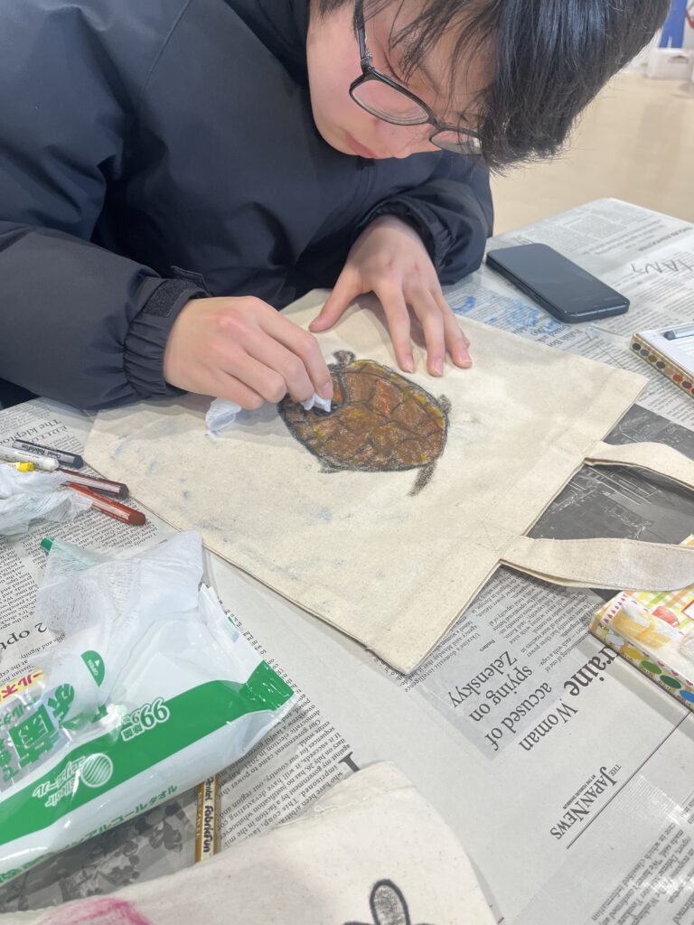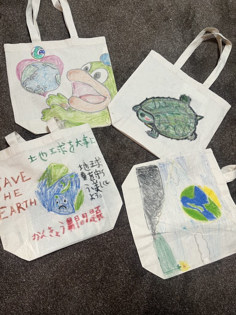 30㎝×40㎝のトートバッグに”エコ”をテーマに絵を描いていきました。