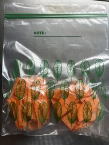 切ったにんじんは冷凍用保存袋に入れ、空気を抜いて平らにして凍らせます。