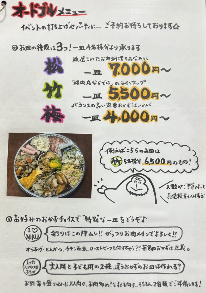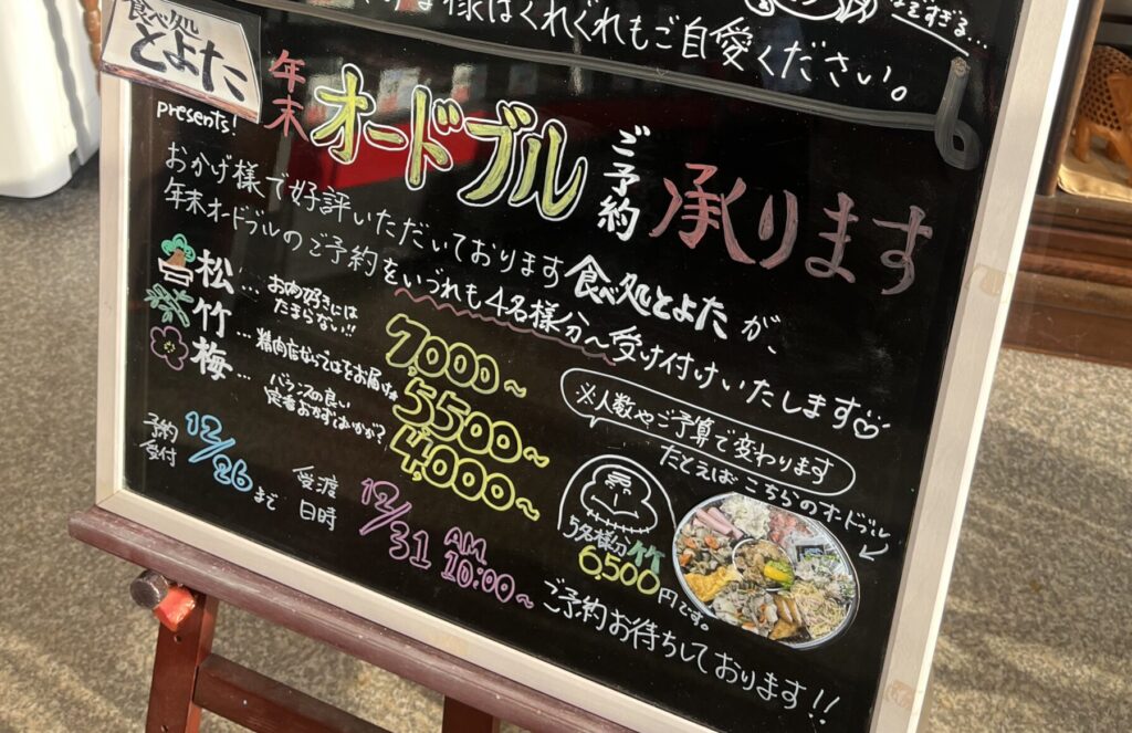 肉とよがお届けする飲食店【食べ処とよた】では、お持ち帰りメニューとしてお弁当やオードブルがあります。