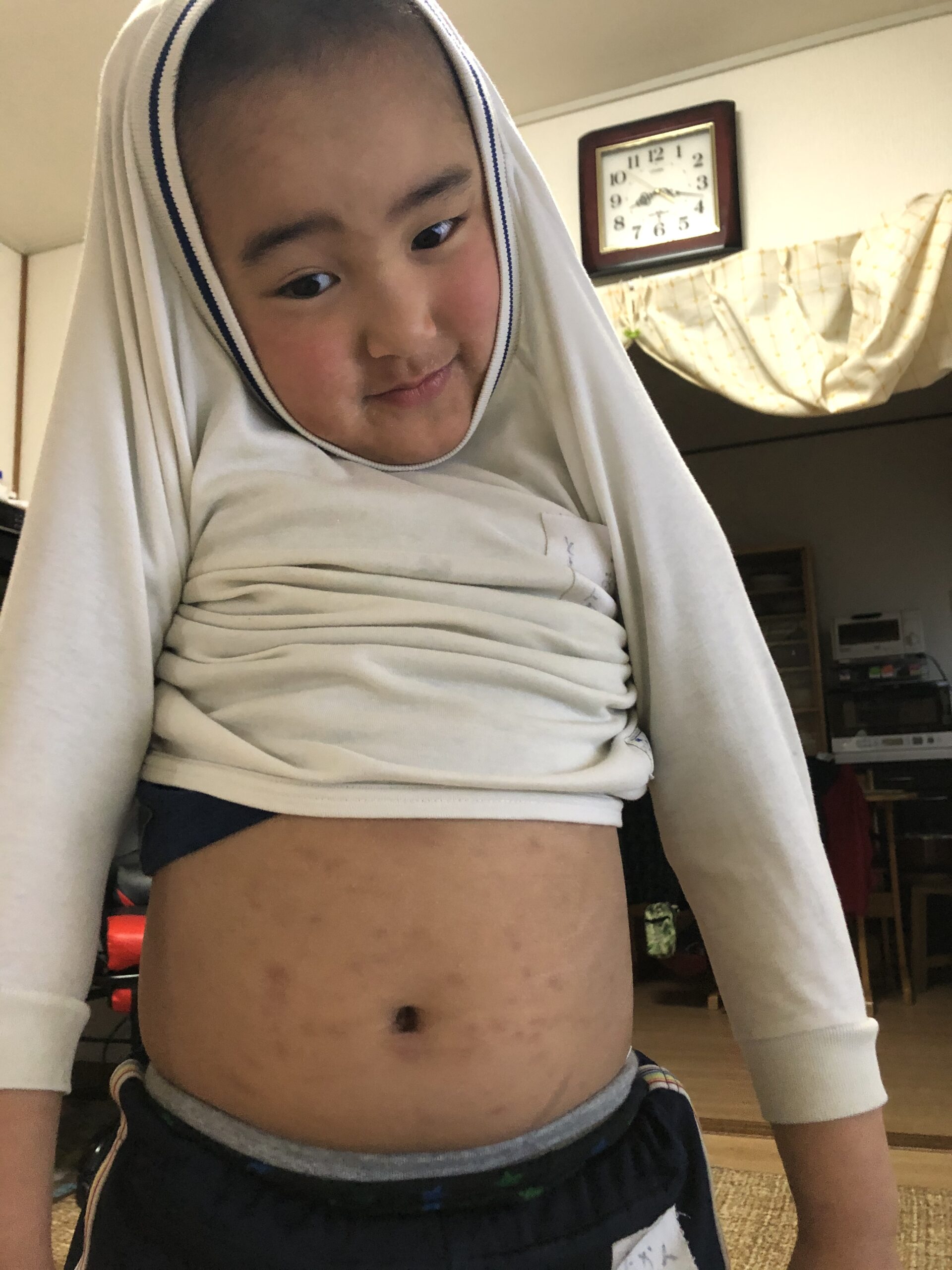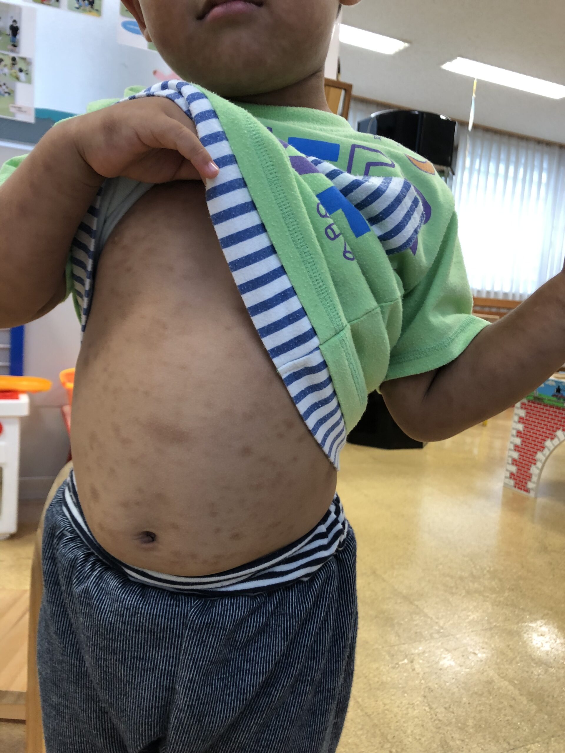 次男的にはじんましんとは名ばかりの‥とくに痒くなることはなく身体に赤黒い斑点ができるだけ、といったものだからです。
