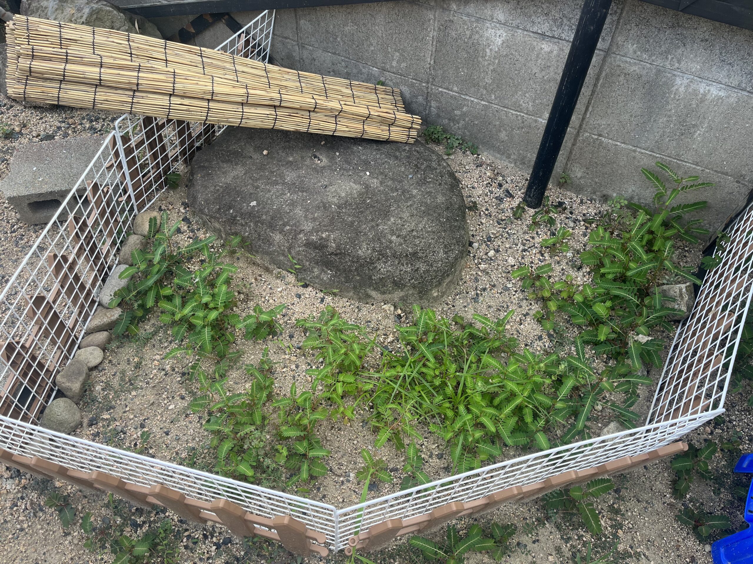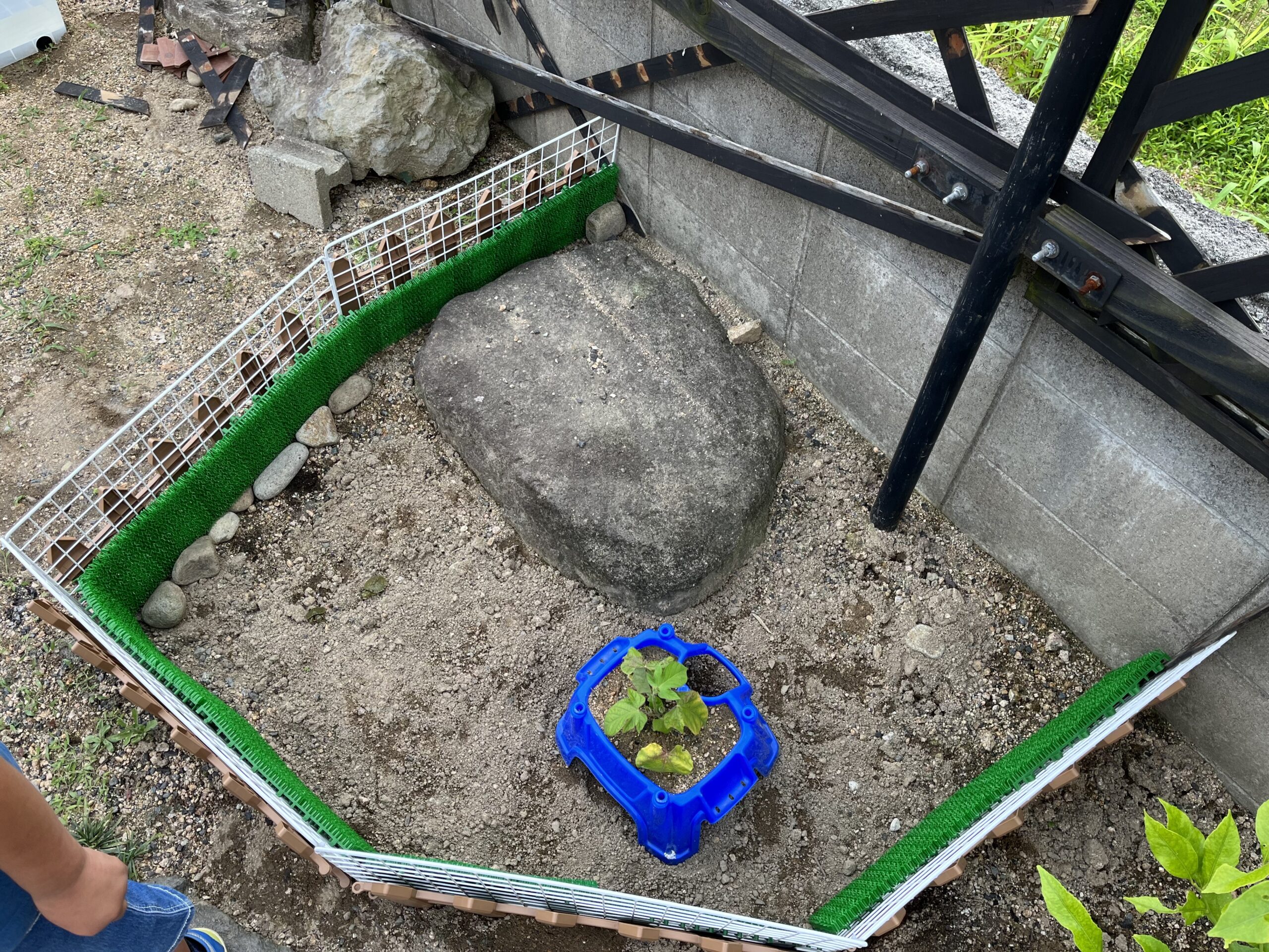 毎日お散歩させるスペースも、成長したが故の甲羅の大きさで抜け出しが不可能となったことで、人工芝生の壁を取っ払えてスッキリとしました。