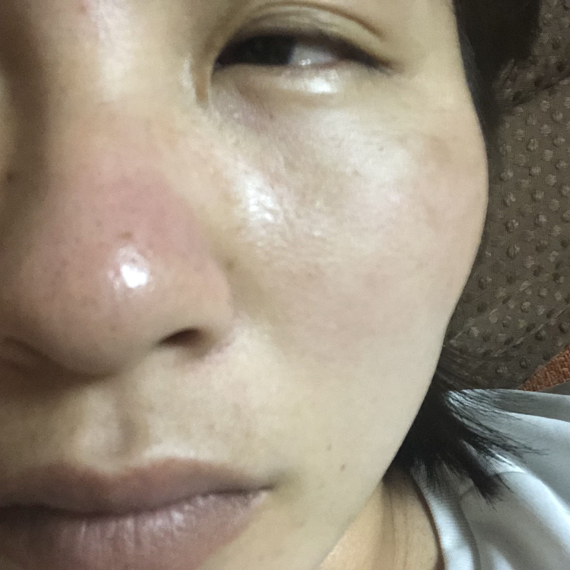 鼻は言わずもがな、ホホにいたっては1番出っ張っている部分を刺しやがりました。