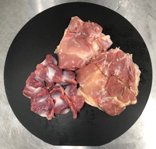 鶏もも肉は今回は皮付きのまま3㎝角に、白ねぎは2㎝幅にぶつ切り。