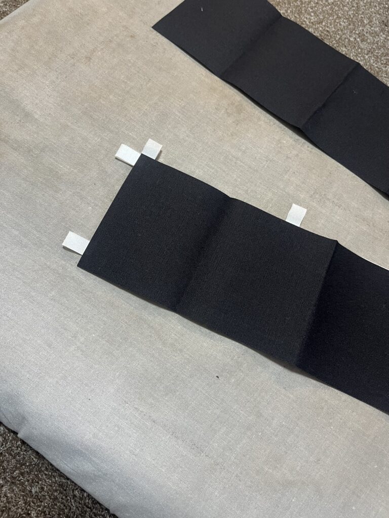 「アイロンで簡単補修!」が謳い文句の補修クロスを、小さなのぼりに装着していきます。