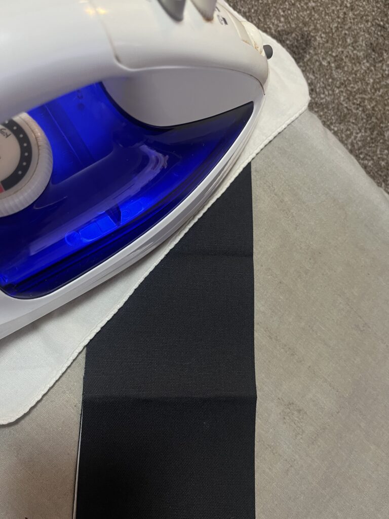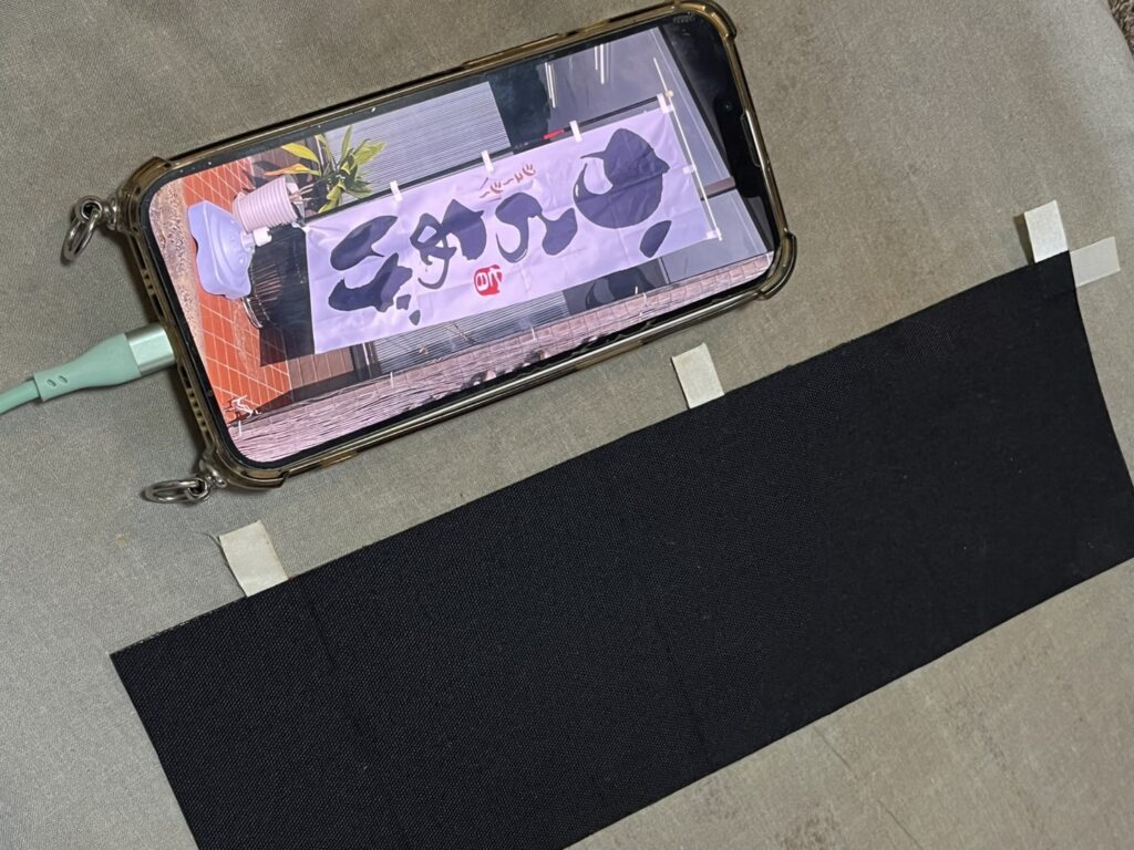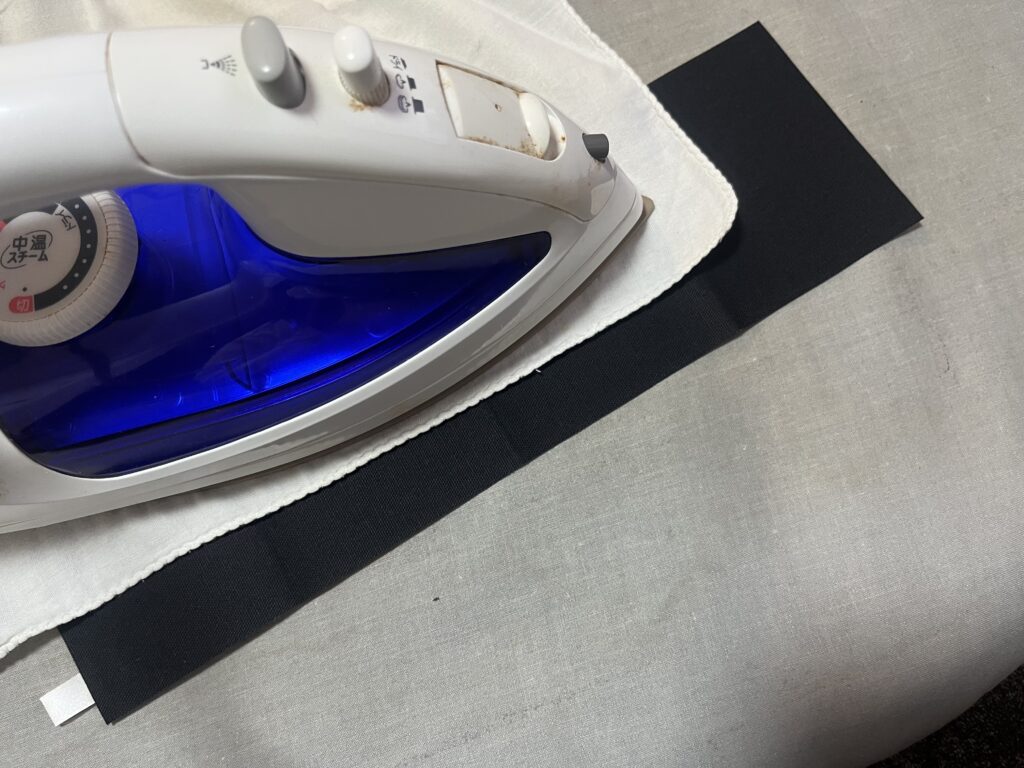当て布をしつつ‥のぼりからはみ出てる部分がアイロン台に装着しないように、ちょっと慎重に行います。