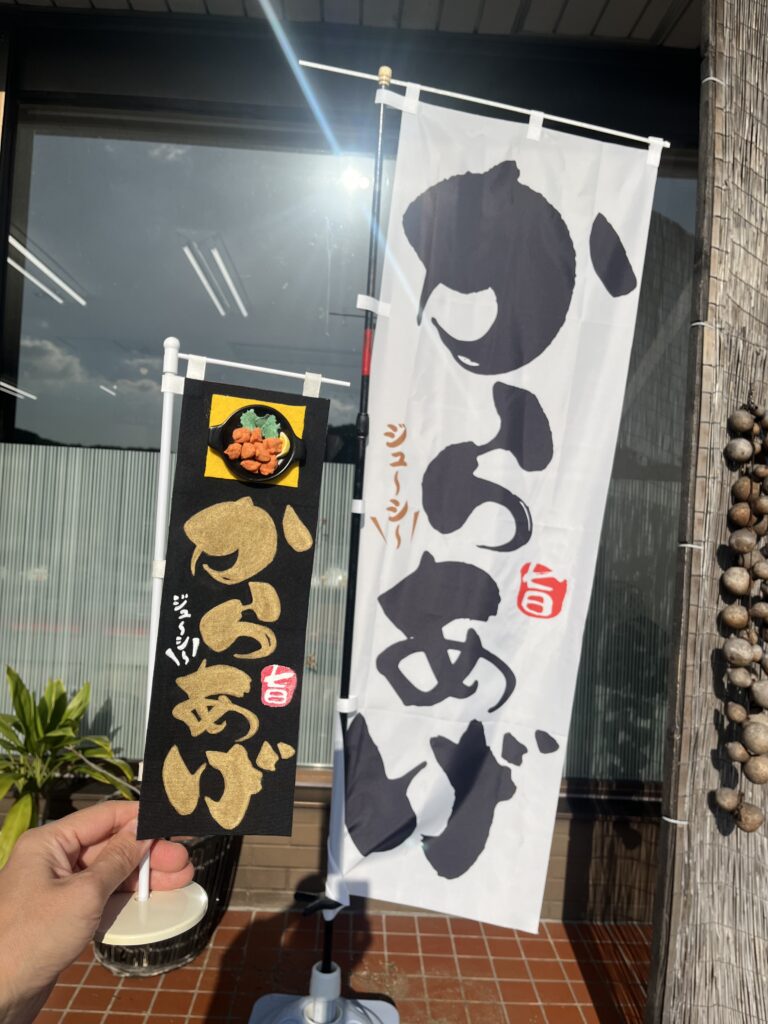 からあげの横にさらにのぼりがあったら、もっと目立たんかなぁ、、、、