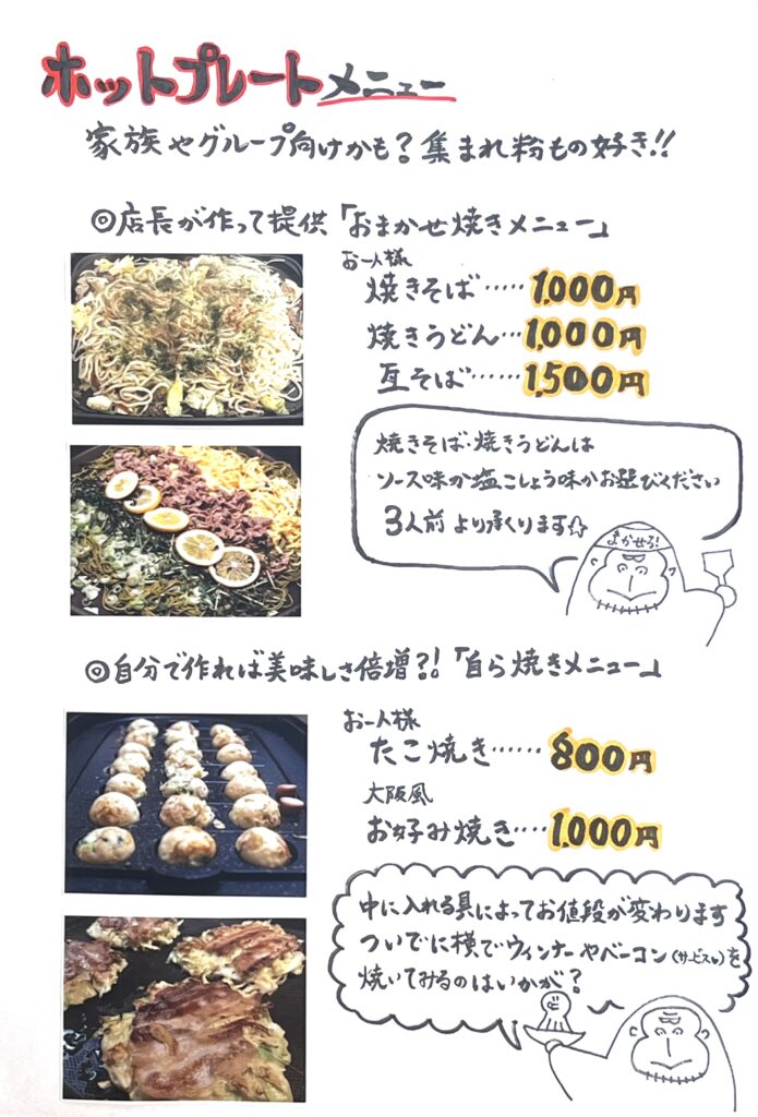 こちらは【ホットプレートメニュー】