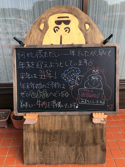 スーパーや他の精肉店では、値段のみを書いたカードを準備しておいて毎回シールなどで県表記しているのが普通なのですが‥