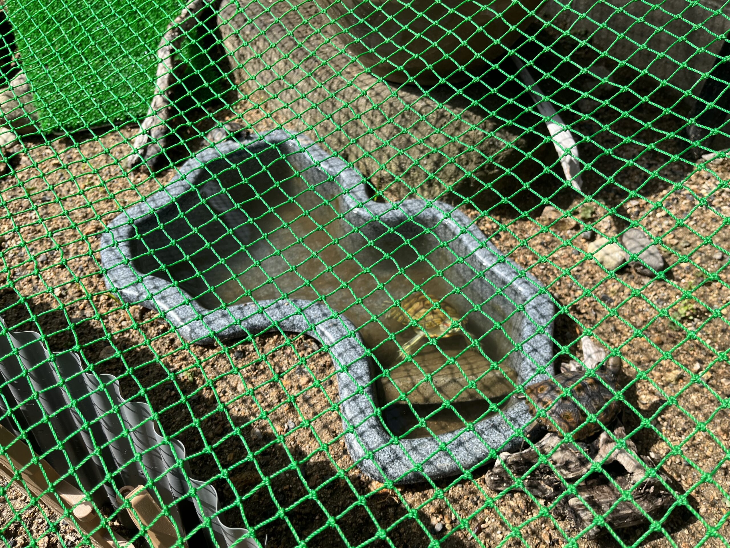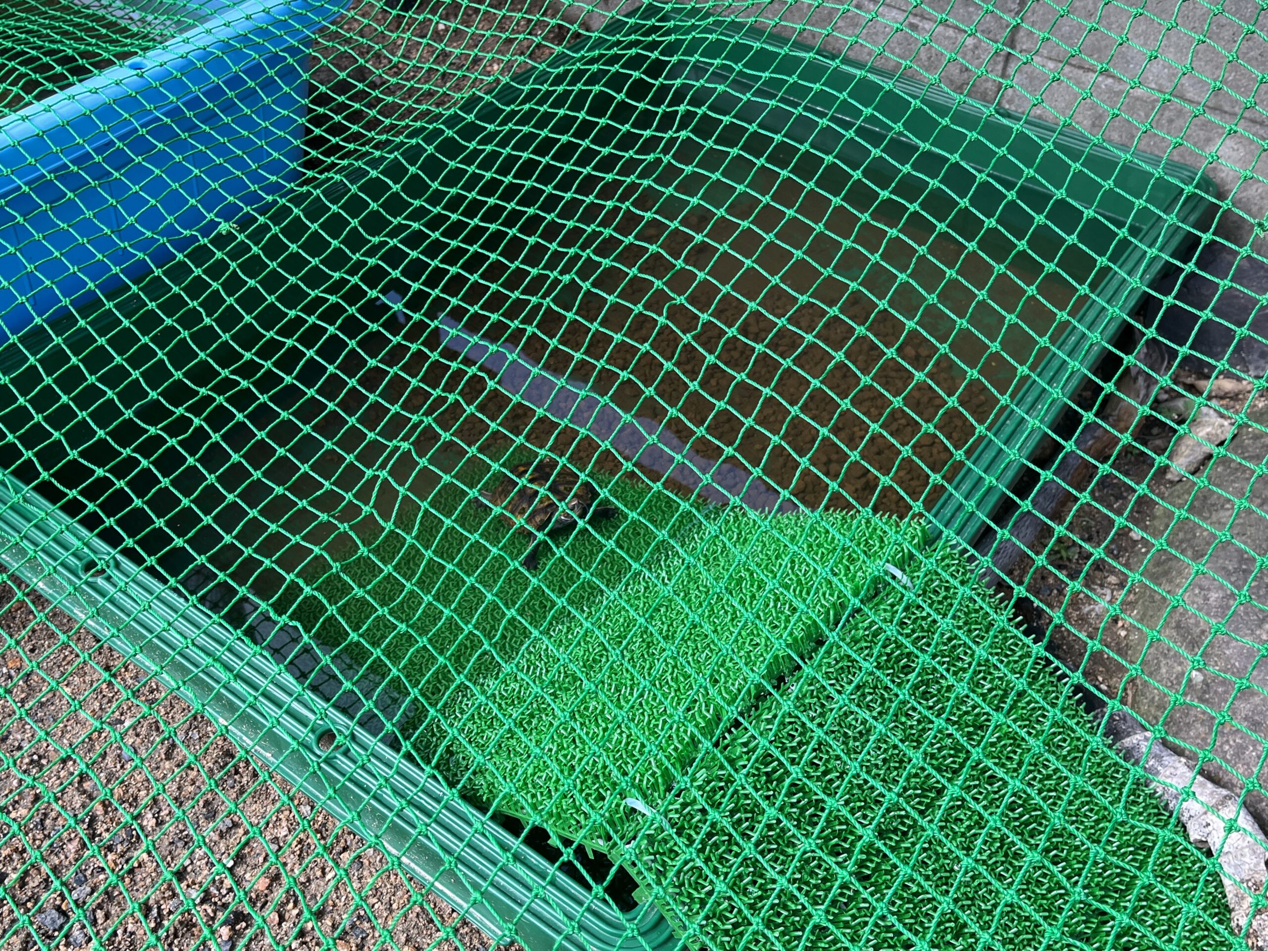 実は柵越え&土掘りを駆使し逃げ出し名人のカメ、成長に伴い簡易柵だけだと逃げてしまうこともあるんだとか。