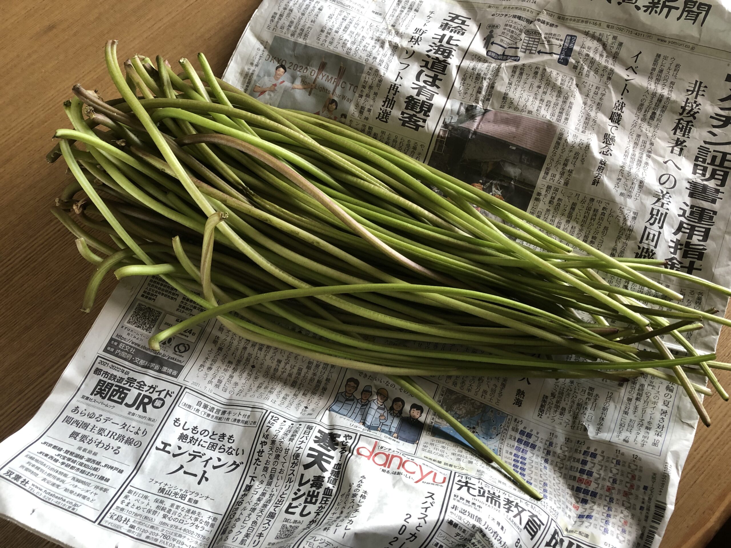 いもの茎を1分強ほど湯がいていきました。