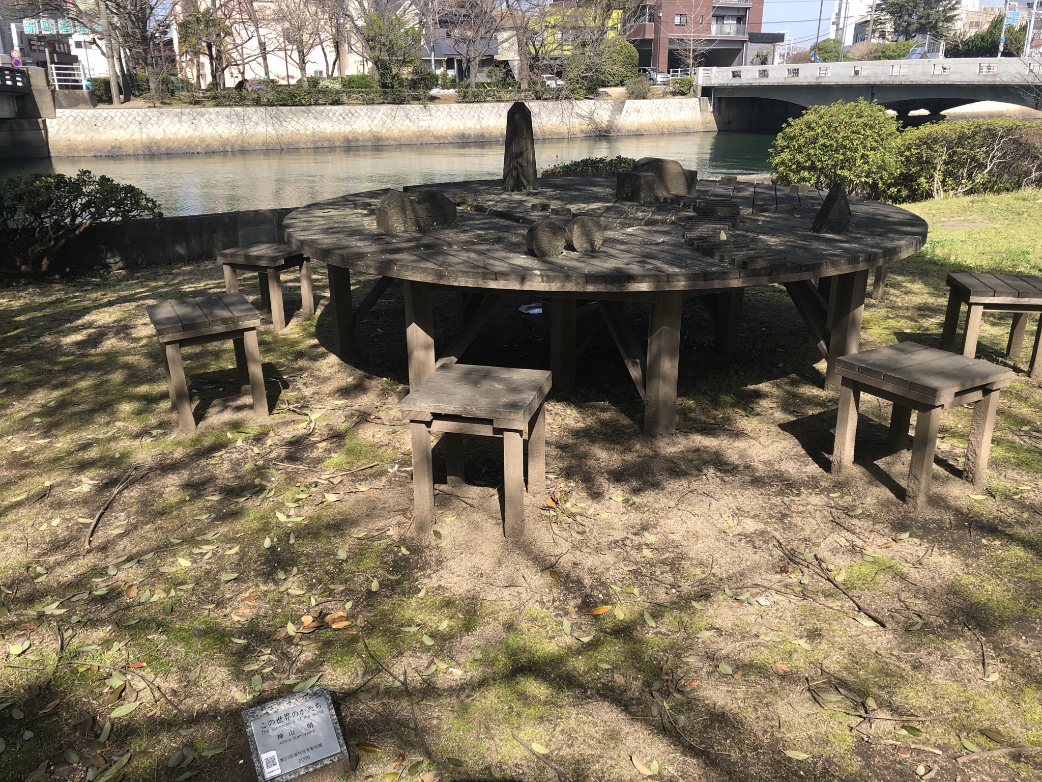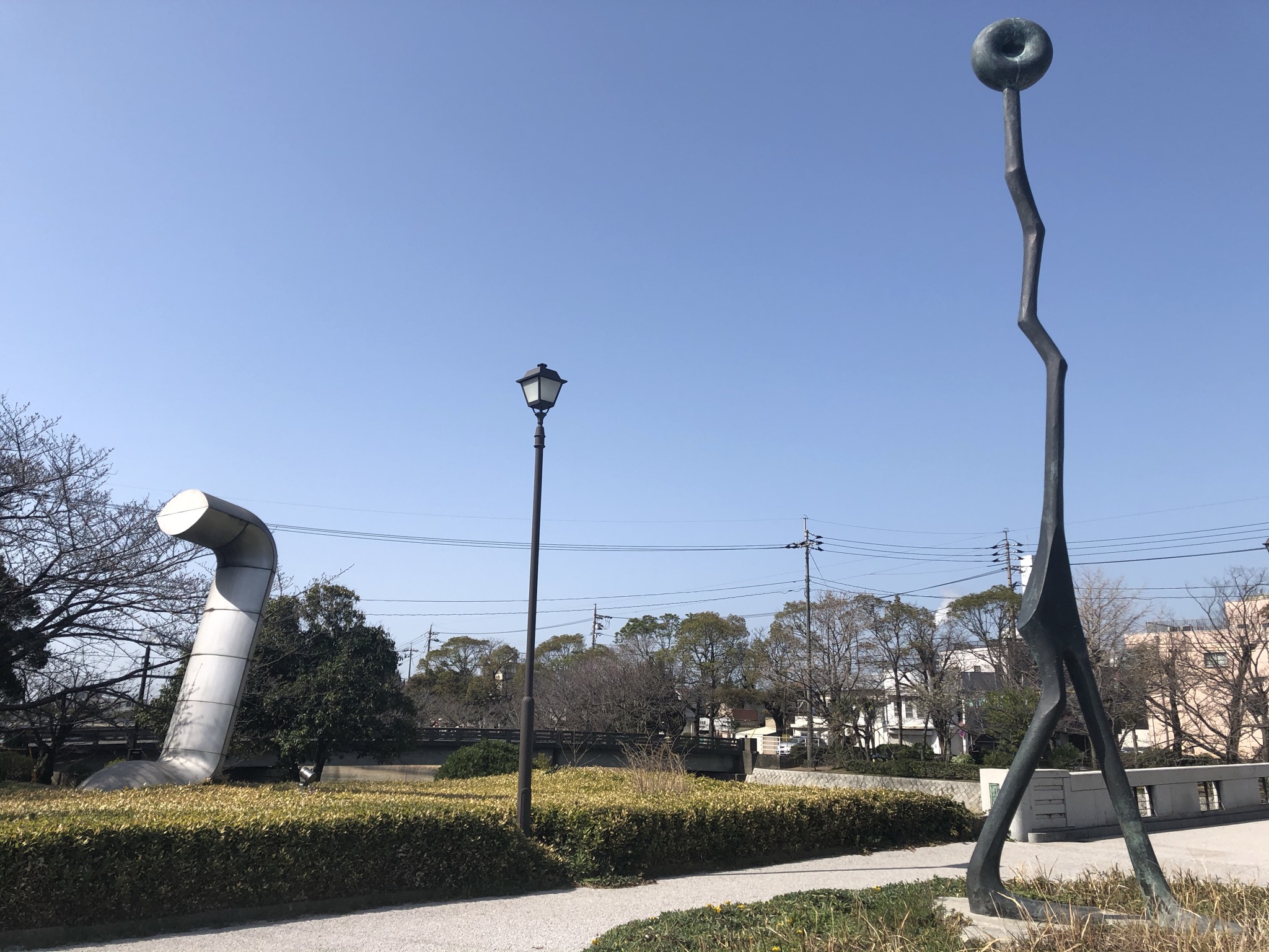 桜並木に平行して、この川沿い公園にあるさまざまなアート作品も見所の1つです。